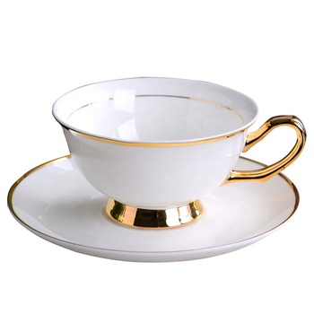 Fine Bone China 빈티지 황금 커피 컵과 접시 도자기 200ml 로고가있는 찻잔과 접시